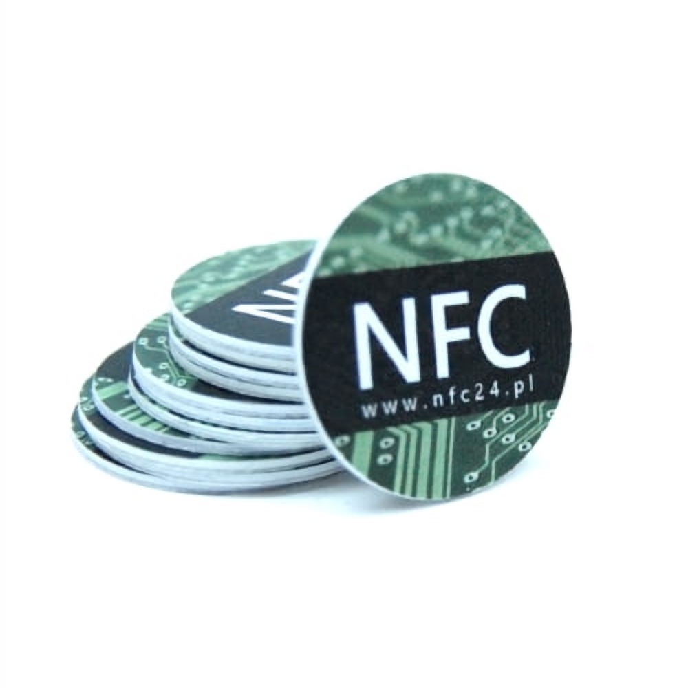 Naklejki NFC wykonane z tworzywa PVC, z nadrukiem. Oferowane tagi NFC są wodoodporne oraz mniej podatne na uszkodzenia mechaniczne w porównaniu z naklejkami wykonanymi z papieru. Średnica znaczników NFC wynosi 25mm.